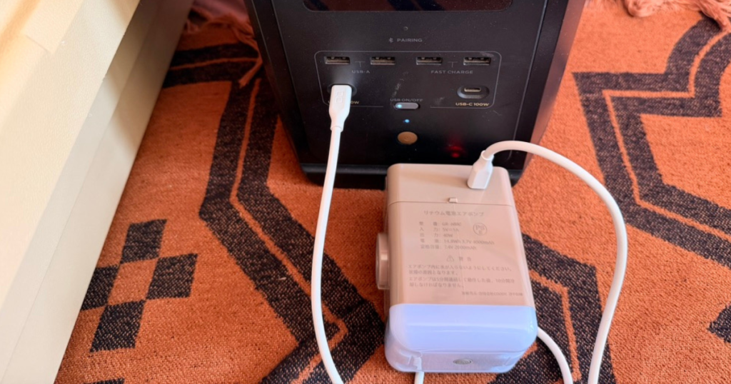電動ポンプは充電式で、タイプ C端子で充電が可能です。